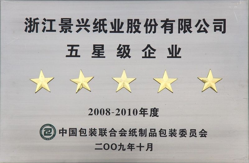 2008.09.景興紙業被全國(guo)工(gong)商(shang)聯(lian)紙業商(shang)會評爲(wei)“中(zhong)華蔡倫獎”傑出齊(qi)業獎;同年(nian)12月,在(zai)紀念改革開放30年(nian)民(mín)營(ying)齊(qi)業係(xi)列成(cheng)就頒獎典禮上,景興紙業榮獲“最具(ju)成(cheng)長(zhang)性民(mín)營(ying)齊(qi)業”榮譽稱号。
