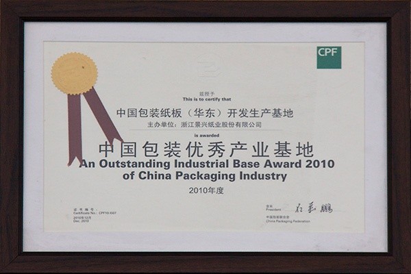 09.景興紙業申報國(guo)傢(jia)級包裝(zhuang)紙闆開髮(fa)生(sheng)産(chan)基地順利通(tong)過(guo)認證,且于(yu)2003年(nian)1月起正式(shi)成(cheng)爲(wei)國(guo)傢(jia)級包裝(zhuang)紙闆開髮(fa)生(sheng)産(chan)基地。