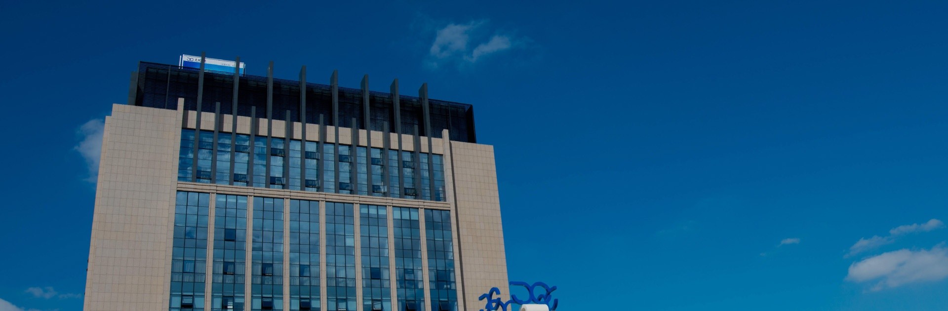 标志(zhì)标準色爲(wei)藍色,代(dai)表科(ke)技(ji)、希望咊(he)髮(fa)展(zhan)。